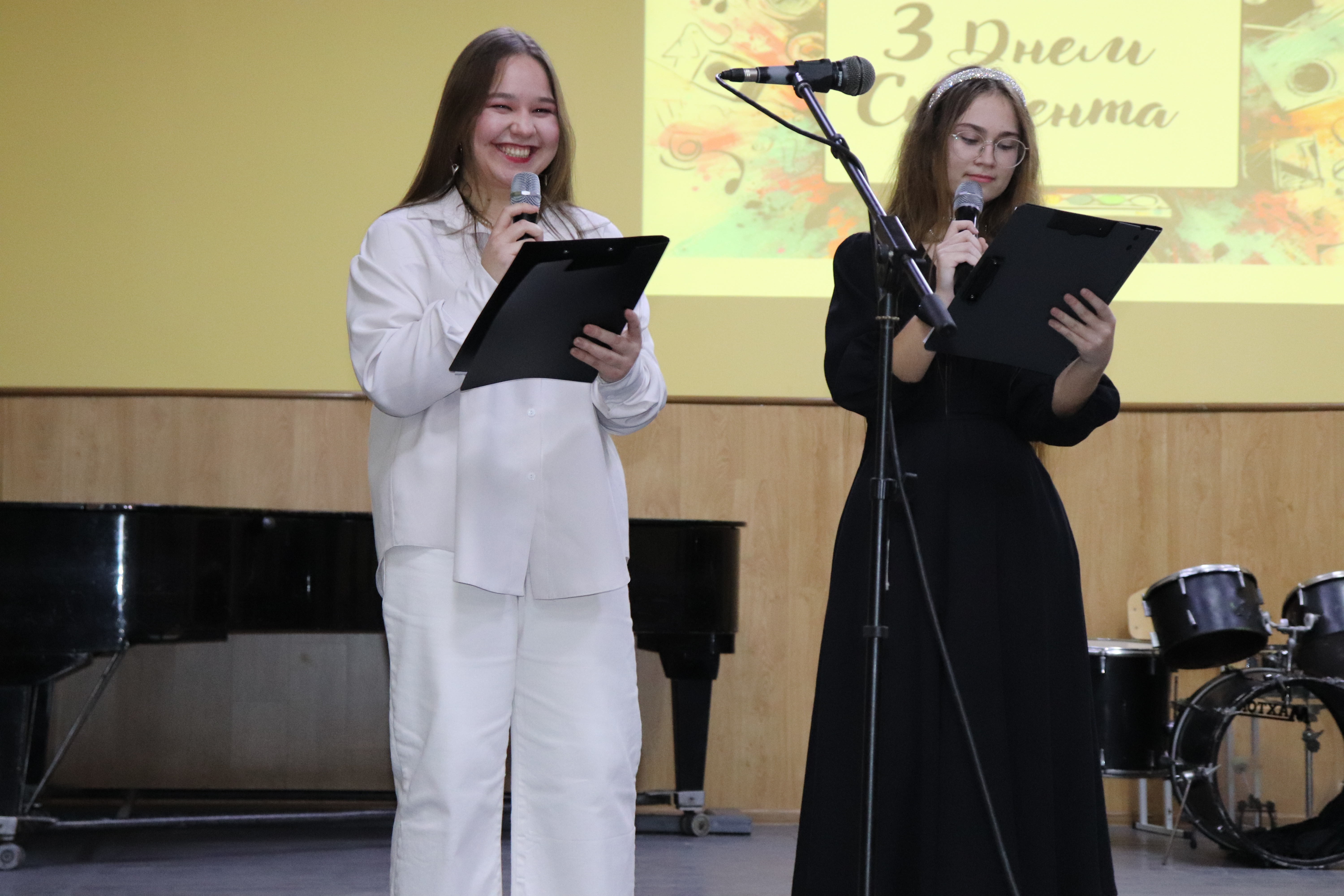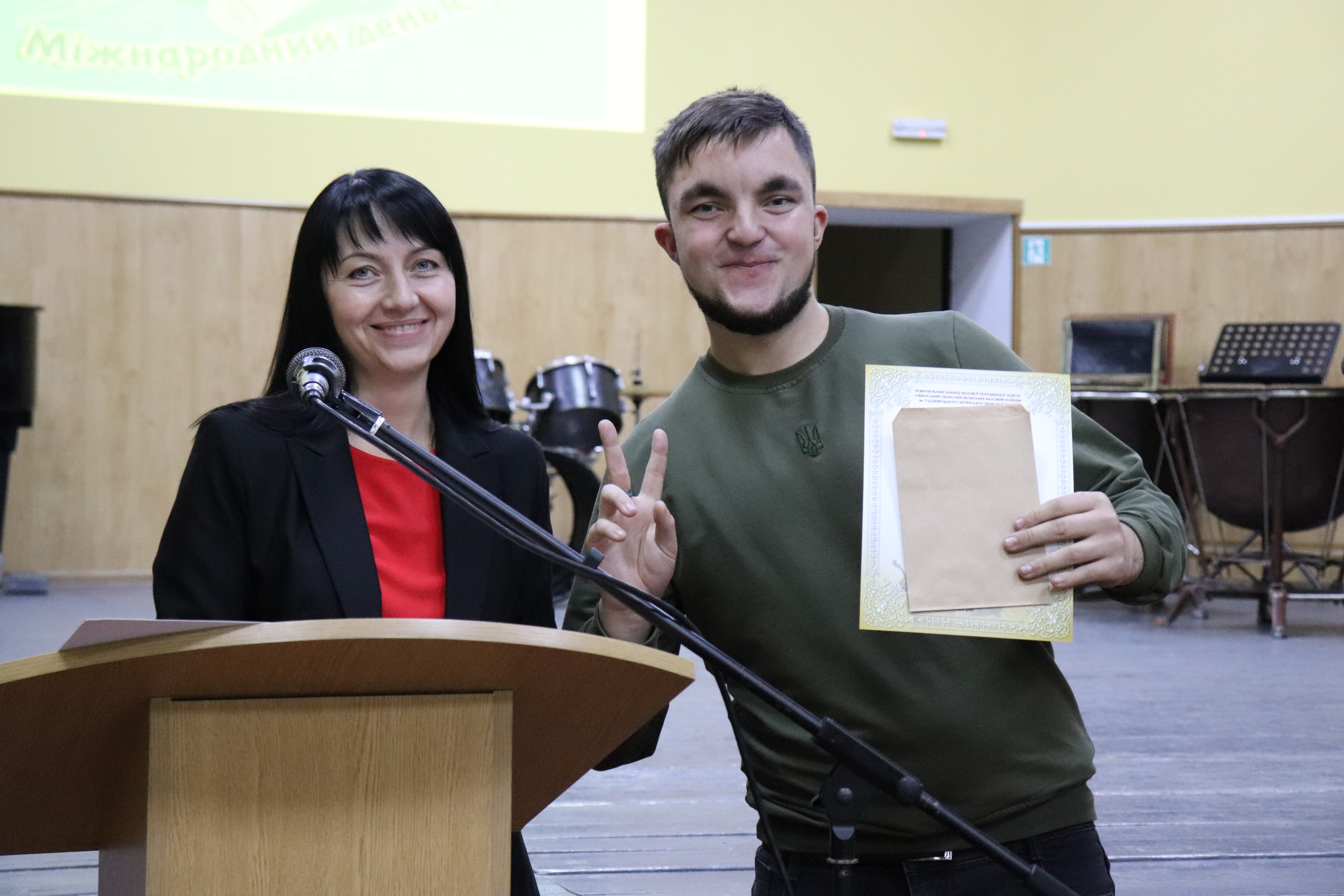 Студентство зі святом привітала в.о. директора І.М. Ряба. Вона вручила подяки та фінансові заохочення найактивнішим студентам, які зробили вагомий внесок у життя коледжу та побажала молоді успіхів у навчанні, натхнення, якнайцікавіше провести студентські роки, стати успішними та досягти поставлених цілей. А заступник директора з виховної роботи О.М. Клапатнюк підвела підсумки конкурсу "За що я люблю свій коледж?", переможцем якого став студент 4-го курсу відділу "Спів" - Віктор Таран. Він отримав спеціальний приз - павербанк.