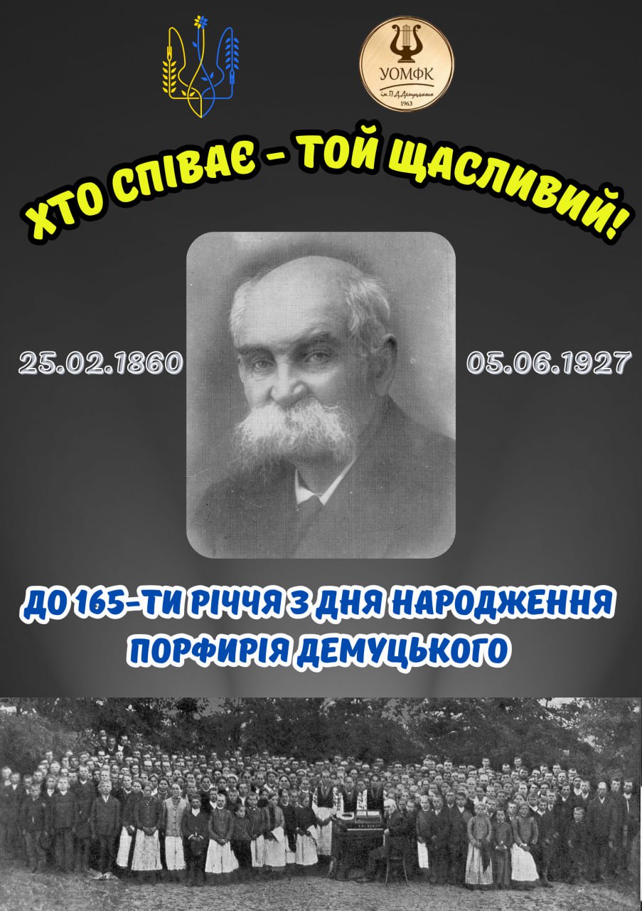 «Хто співає - той щасливий!» - під такою назвою 26 лютого 2025 року в Уманському обласному музичному фаховому коледжі ім. П.Д. Демуцького пройшов яскравий мистецький захід, присвячений 165-й річниця з Дня народження великого українського фольклориста, композитора, диригента, педагога - Порфирія Даниловича Демуцького.