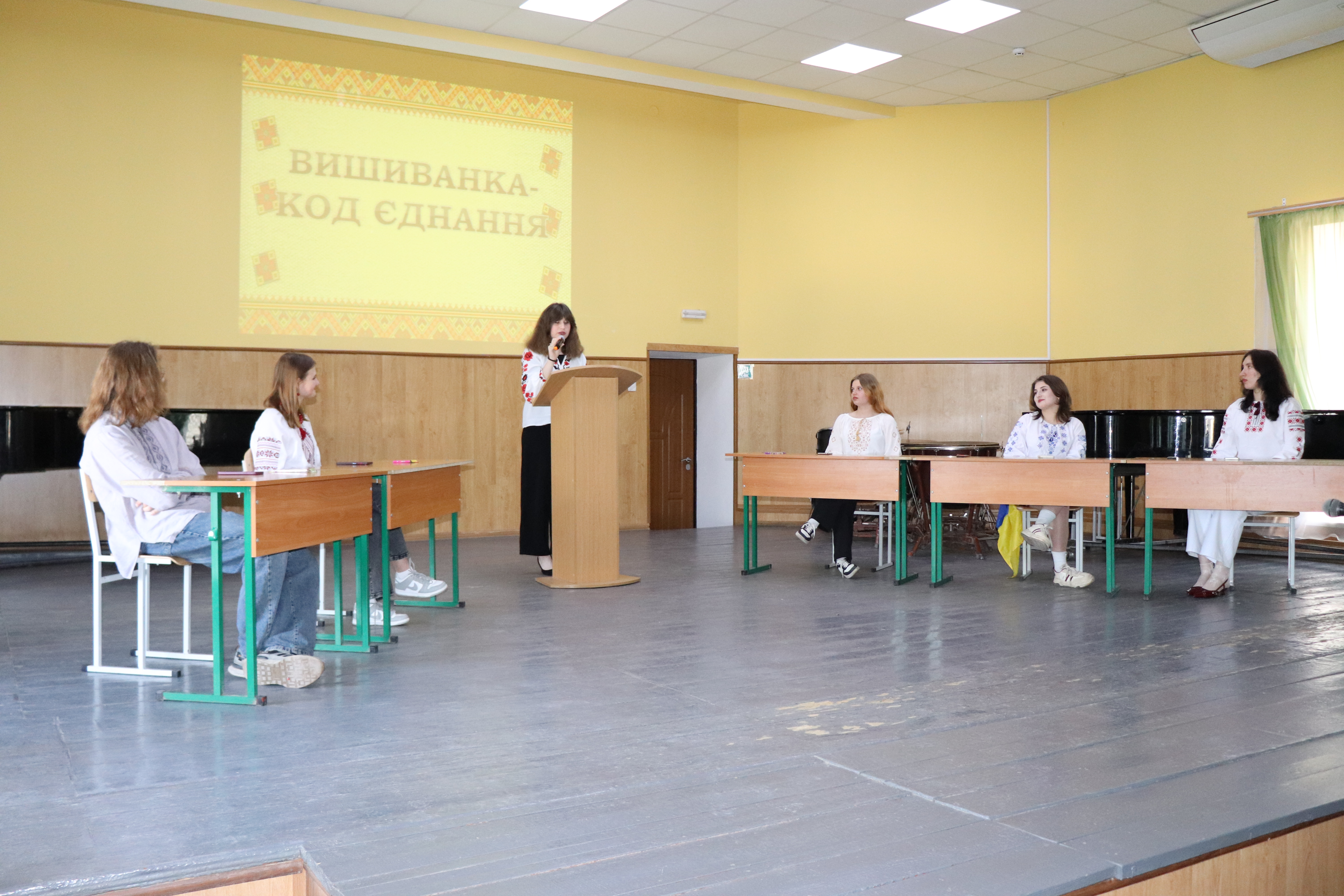У цей день на сцені заходу пройшов студентський вечір - конкурс "Вишиванка - код єднання", в якому взяли участь студенти різних відділів.